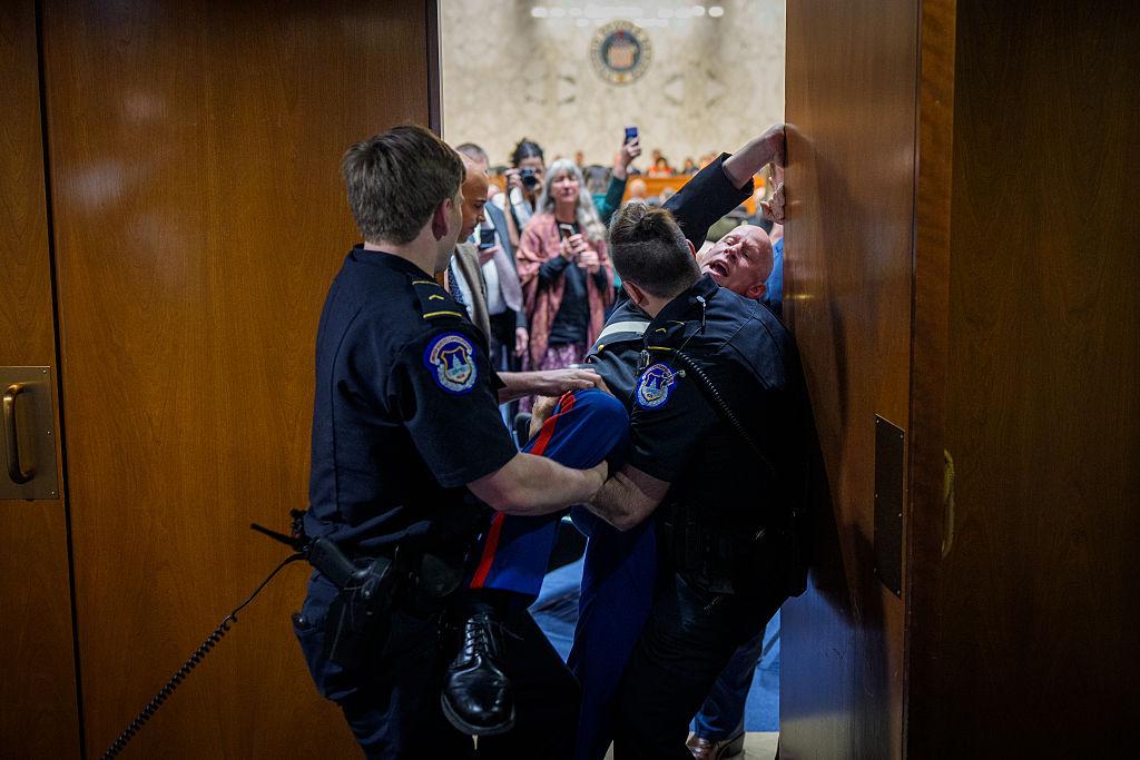 Veteranul american Brian McGinnis a protestat în Senatul SUA împotriva războiului. Incidentul a devenit viral